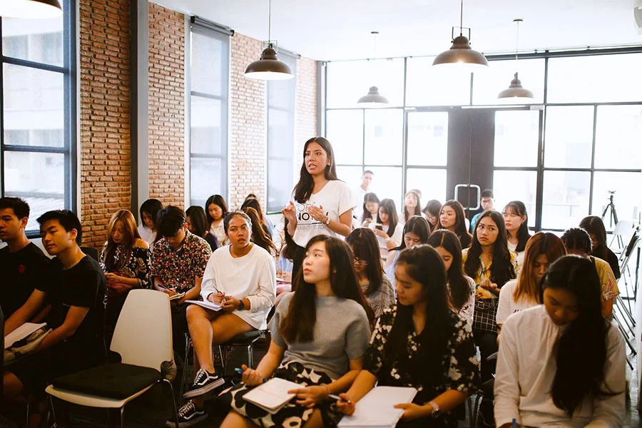 วิทยากรรับเชิญสอนน้องๆ เขียน Essay เข้าอินเตอร์รอบข้อเขียนในงานเปิดบ้านธรรมศาสตร์